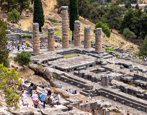 Med sine bevarede templer, teater, stadion og museum er Delphi et af Grækenlands mest fængslende arkæologiske steder. Giv dig selv mindst en halv dag til virkelig at opleve både ruinerne og den nærliggende by.
